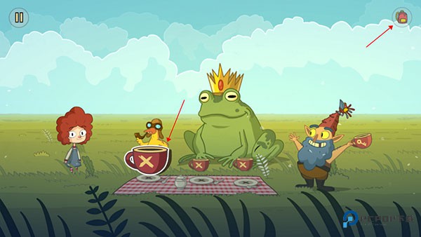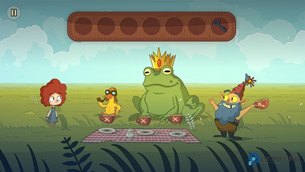 2、然后我们可以看到一个草坪上的青蛙,点击它,会出现小女孩。