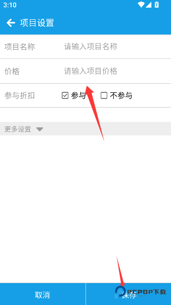3、填入项目名称、价格与折扣,就像为新发型定下名号、贴上价签和优惠勋章,最后保存便将其收进服务目录。