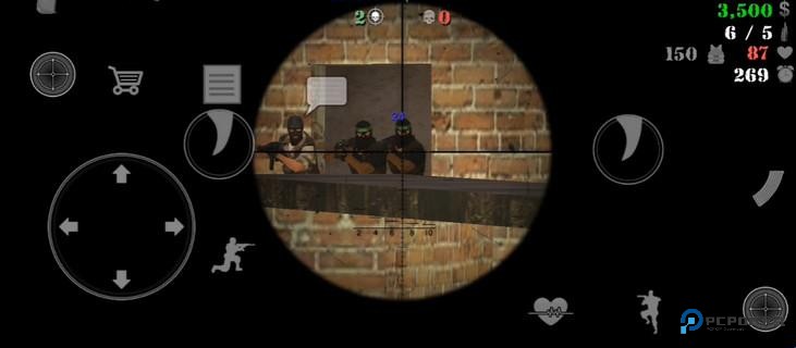 7、买完毕,这里以狙击为例,左侧圆盘控制角色前进后退。
