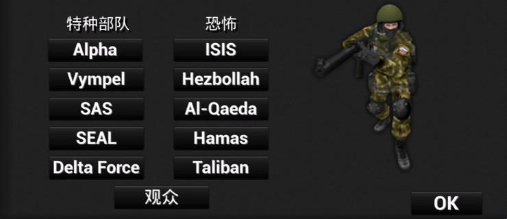 4、选择阵营,特种部队或者恐怖分子,也可以观战看电脑打架。