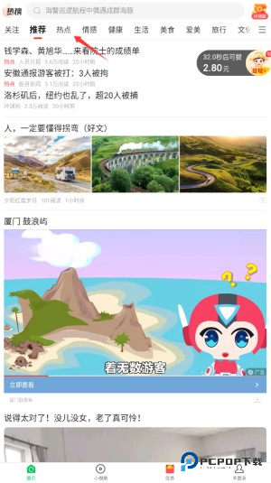 1、启动青年看点 APP,马上点底部导航的 “热点” 频道,哎,这里天天更新全网最热的资讯,随时找到新鲜事儿。