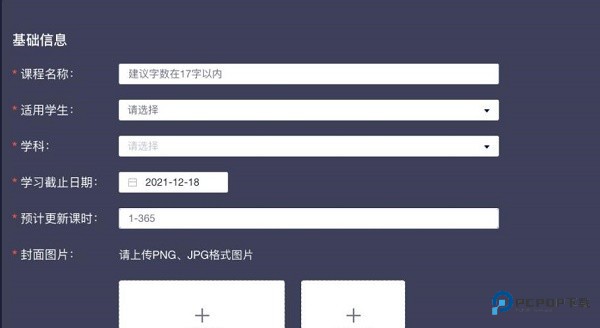 3、接着设置视频属性,包括名称、适用学生、学科、截止日期、预计更新、封面图片等。