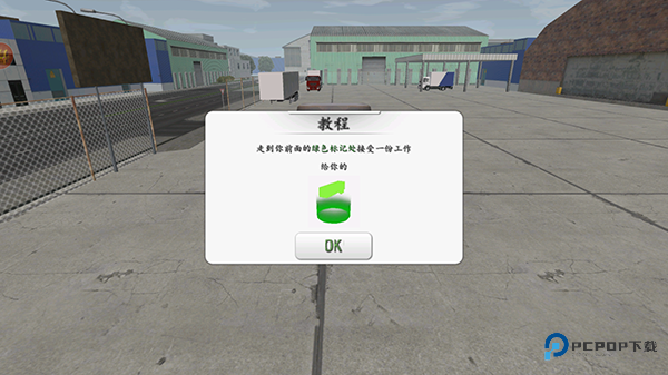 3、 到了起点区域,按照引导把车开到地面上发光的小绿圈那里,准备接活计。