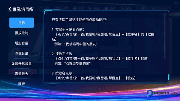 2、然后就可以在有网或无网条件下进行语音点歌