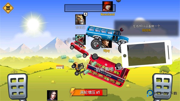 作为一款充满刺激、古怪的多人赛车游戏,其玩法非常的丰富有趣,大家在这里将需要利用地形来超越对手,通过高超的驾驶技术来征服你的对手,同时在此期间还有着各种各样的赛车等待你的解锁,可玩性极强,不仅能带给你竞速的畅爽乐趣,还有着收集元素带来的休闲玩法,让你不会觉得游戏玩起来太过单一。