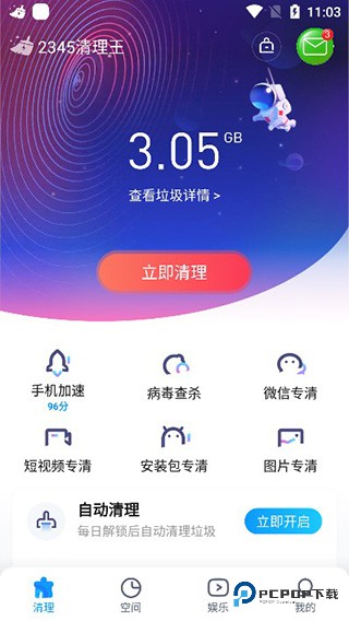 4. 一键清洁,轻松释放手机空间。智能空间清洁,告别无良商家的垃圾促销信息