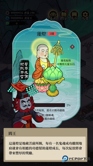 6、这莲灯可是地藏菩萨给的好宝贝!每成功送走一位鬼魂,积攒的功德就会滋润莲灯。等它 “开花” 那一刻,惊喜可少不了呢!莲灯等级紧跟着阎王殿等级走,级别越高,开花需要的功德也越多,当然,拿到手的奖励也更丰厚。