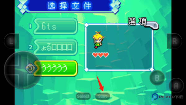 1、在游戏狗下载塞尔达传说缩小帽正版游戏后,点击开始游戏,然后要先给游戏创建存档,选择你要存档的文件,这里的A按钮代表确定,点击start。