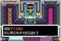第三形态的魔人古夫,在他的手从地面伸出后,用弹跳仗攻击他的手,使其绷直,变小进入其中,找到图34中林克攻击的小眼睛猛砍。另一只手也是一样,只是要用燃灯,如果时间过长,只要重新来过就行了。两只手都被消灭后,回来变大,分身用剑反弹古夫的攻击,反复几次即可(图35)。