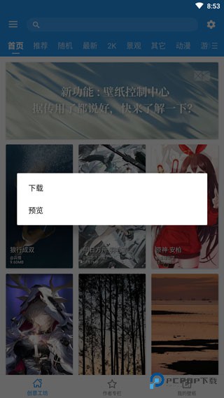 2、点击作者专栏,你可以根据画师作者找到自己想要的壁纸主题;