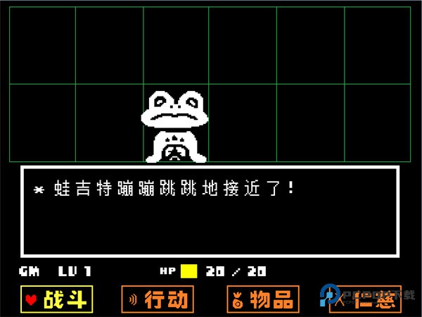 4、如果敌人选择攻击你(不论你是否选择主动攻击),在屏幕下方会出现一个方框,玩家操控这个心形对方框的图案进行躲避,一旦被触碰就会受到伤害,某类特殊图案即便是触碰了也不会受到伤害(如骷髅的蓝光)。