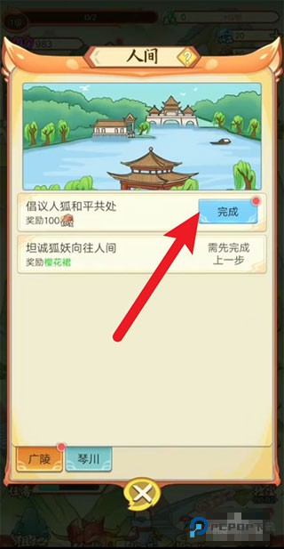 4、最后在人间界面点击任务中的完成,就直接升级了。