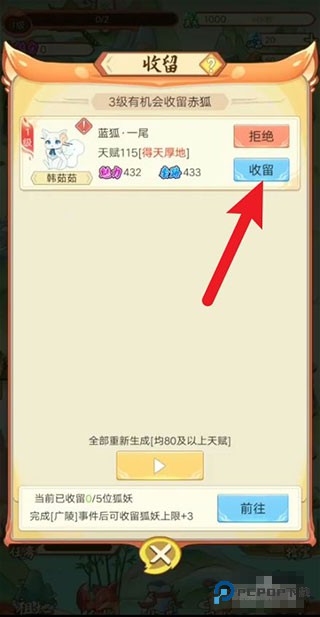 1、首先在狐山收留一只狐妖;