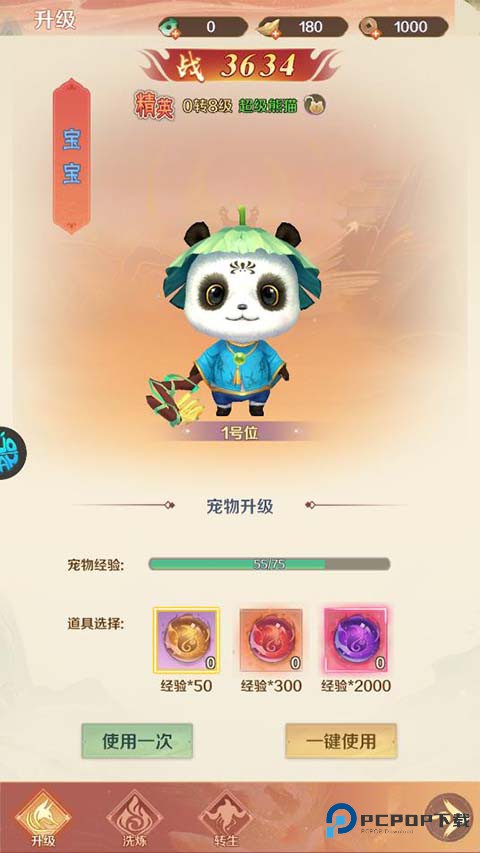 宠物可通过升级、洗炼、吞噬、学技能来提升战力!