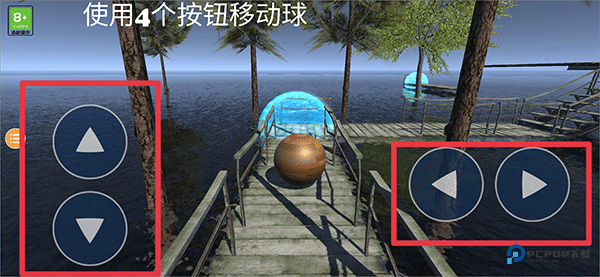 2、看屏幕上的四个方向键。玩家需要使用这些方向键来控制平衡球的移动。