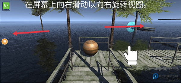 3、在屏幕上向右滑动以向右旋转视图,向左滑动则可以向左旋转视图