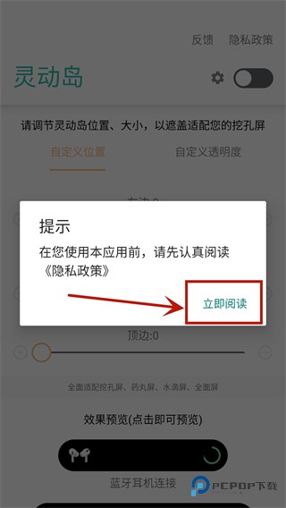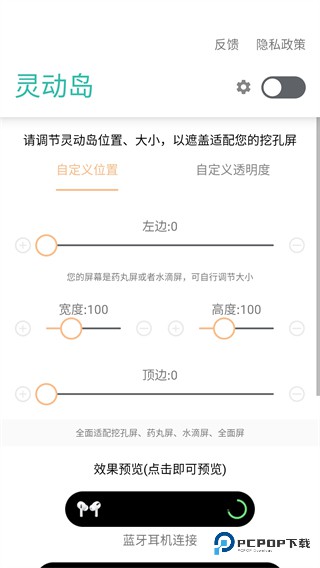 6、在应用首页可以自定义灵动岛的位置、大小,以遮盖适配你的机型。