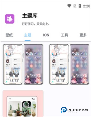 1、首先打开主题库,点开壁纸,用户可以设置各种头像,如女头、男头、背景图、动漫等;