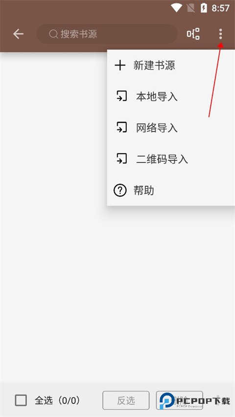 2、切换到书源管理区域,顺手点击右上角的 [三圆点] 按钮唤起菜单选项。