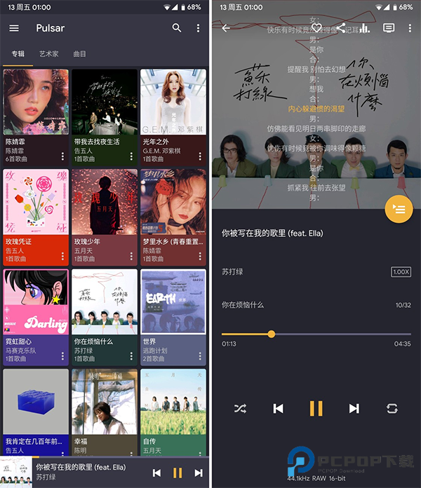 脉冲音乐播放器对歌词的支持还是比较好的,甚至还支持了动态高亮显示,也不会有连时间戳都显示出来的问题。
