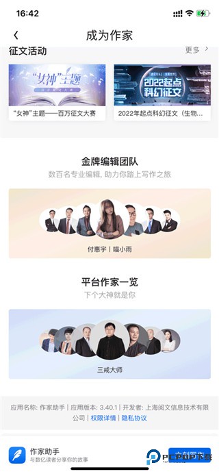 2、选择这条路径后,你会看到 “成为阅文作家,与世界分享您的故事” 的提示。这时需要你点击页面中的 “立即写作” 按钮,根据引导下载并安装 “作家助手” App(阅文官方写作工具)。