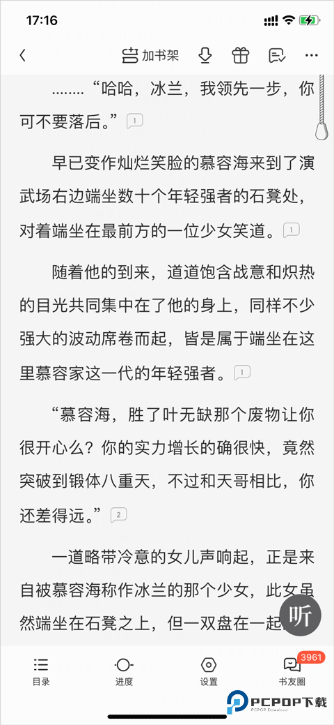 2、戳一下 "目录" 按钮,立马展开所有章节列表。想读哪章就点哪章,秒跳转不耽误!