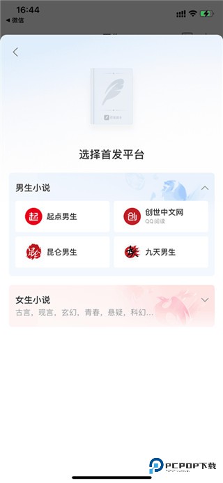 3、下载安装好 “作家助手” App 后,使用你的 QQ 阅读账号(通常也是阅文账号)登录。登录成功即可开始创建你的作品:首先为你的小说想一个响亮的书名。接着需要选择小说的首发平台:男频小说可选起点男生、创世中文网、昆仑男生、九天男生等平台;女频小说则对应起点女生、云起书院、红袖添香、潇湘书院、昆仑女生、九天女生等。