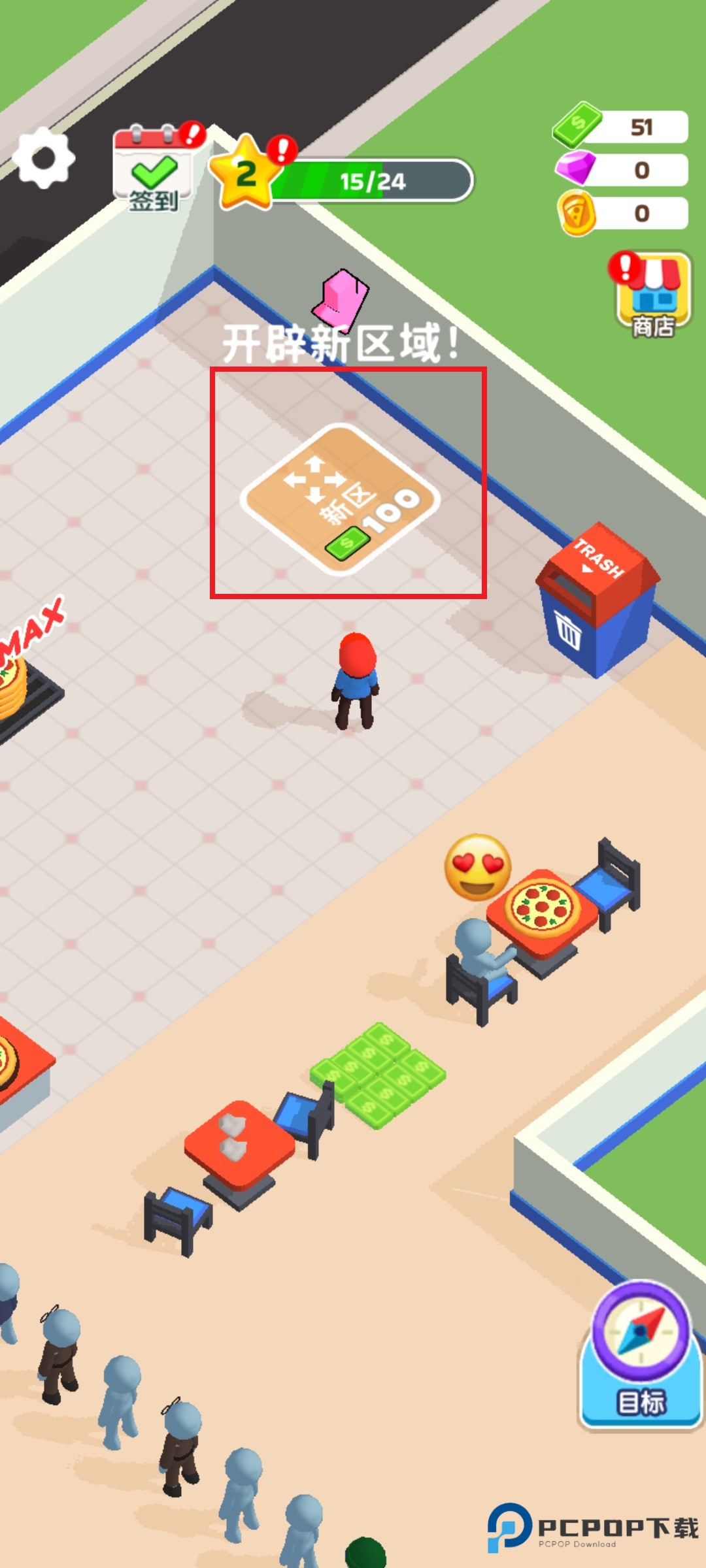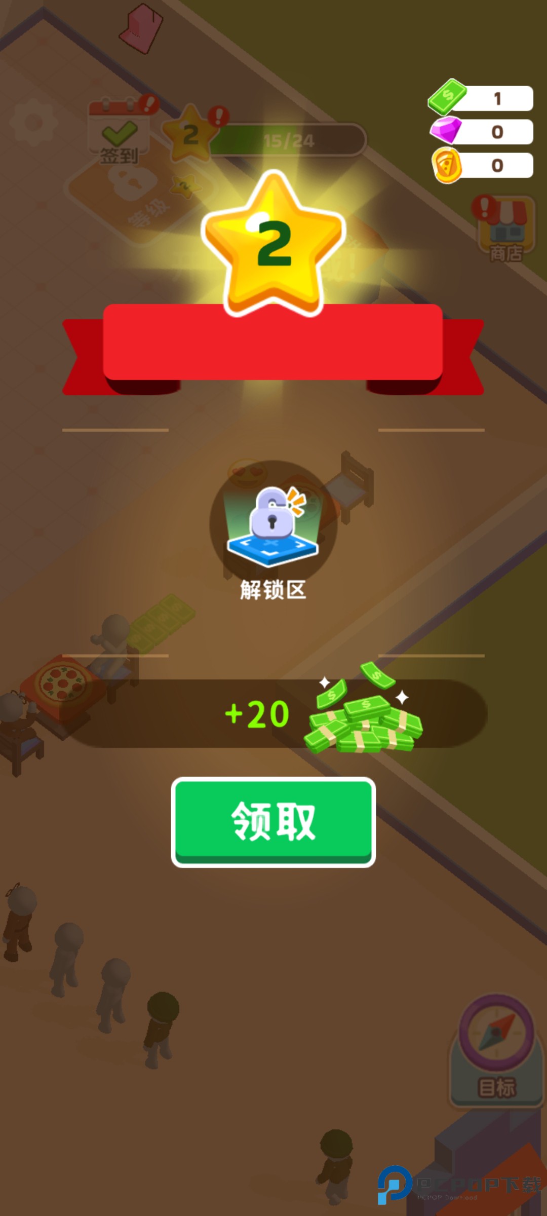 9、当等级达到2级时可以开辟一个新的区域并获得钞票。