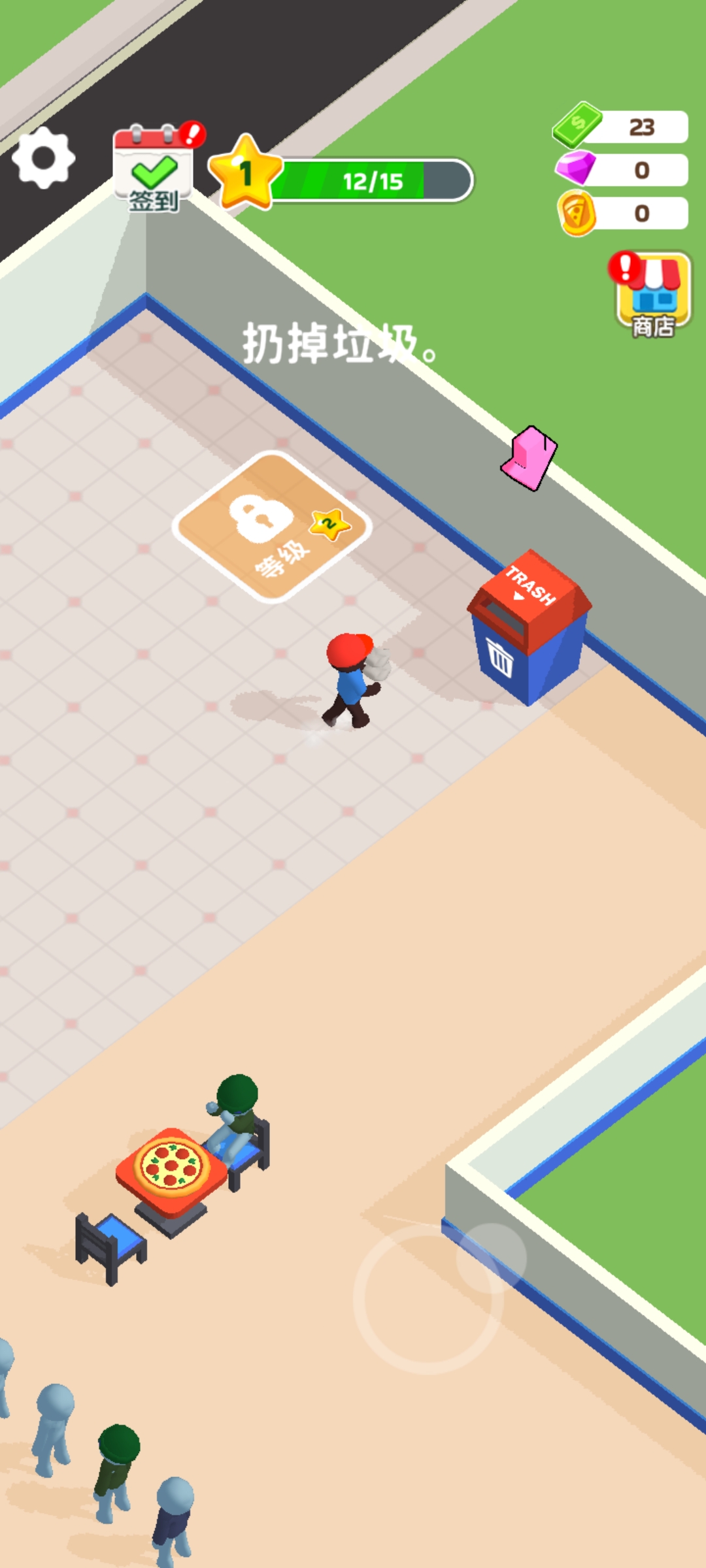 7、前往店铺右上方垃圾桶丢掉垃圾。