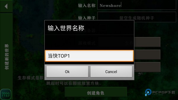 2、给你的联机世界起个独特的名字,确认创建空白新地图。
