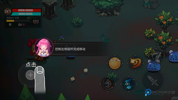 5、操控角色很简单,左边屏幕点住左右拖动就能移动,技能按键都在右侧区域呢。