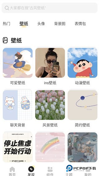 2、发现里有背景图、壁纸、头像、表情包四种分类。