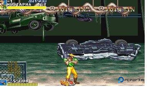 进入第二个场景(有栅栏的),栅栏底下有隐藏宝物。最下面出现的摩托兵区域有补血。最后场景胖子多,记得留个食物包。通关后滞留画面,所有武器无法捡起使用,食物包能捡起但捡起即自爆(算特殊 “使用”)。