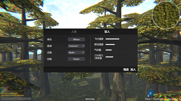 5、进入游戏如图,如选择人类阵营,玩家则需操纵角色攻击巨人;
