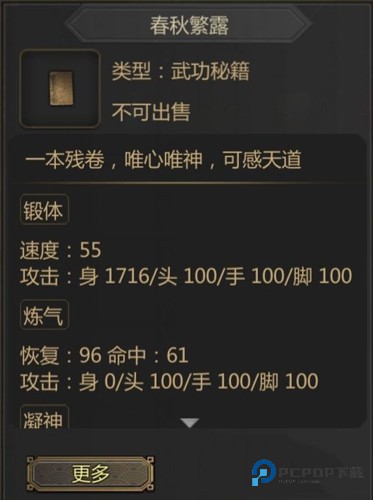 每日与成长方向: 虽然主线完了,但老板娘那里每天都有任务能接,做完奖励也挺丰厚。刚玩到这儿可能会有点懵?该干嘛呢?咱们聊聊怎么变强。好装备神功嘛,初期确实有点远。但提升 “境界” 很关键!境界高了能加不少属性点。怎么提境界?多练武功!每门武功练到 99.99 满级时,会给你加 “元气”,不同武功加的元气值不一样。想知道具体某武功加多少,可以去官网论坛看看 “江湖武学” 资料。看自己有多少元气?角色面板左上角就有显示。