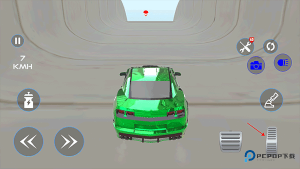 5、首先点击右下角的油门,然后车辆就会起步,你就点击左边的按钮控制方向了