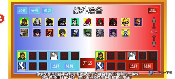 5、然后选择对应的角色、忍卷、通灵兽,就可以开战了;