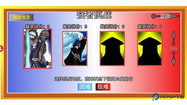 4、我们选择强者挑战,然后点击自己想要对战的角色,选择对战挑战难度;