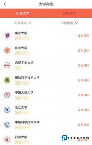 4、在上一步点击大学后,将会出现此大学的具体详情,点击“设为目标”选项即可成功更改目标学校。