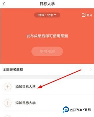 2、进入到目标大学界面,通过点击箭头所指的位置添加或修改目标大学。