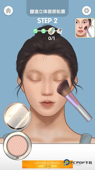 2、游戏里的化妆步骤非常写实,就好像在给人真化妆一样!从打底遮瑕、立体修容,到画眼线涂口红,每个环节都还原到位,能完整体验到化妆师的工作流程。