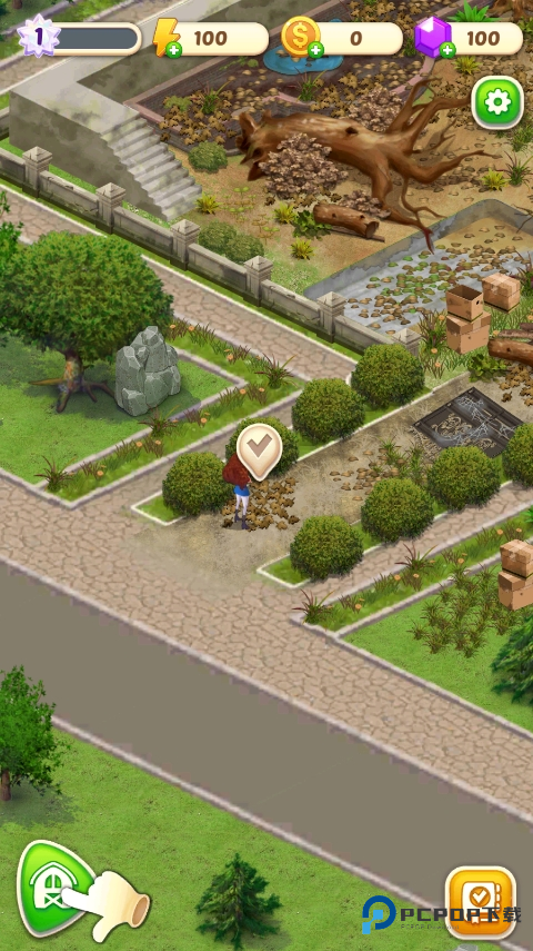 1、下载安装合并庄园阳光小屋游戏,打开进入寻找花园中的杂物,过掉简单的剧情。