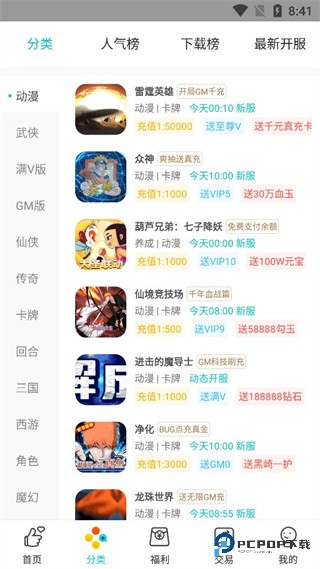 1、拥有海量正版游戏资源,涵盖仙侠、传奇、卡牌、三国、角色扮演、魔幻、Q 版、二次元等多类型题材,提供 BT 版、满 V 版、GM 版等特殊版本下载。