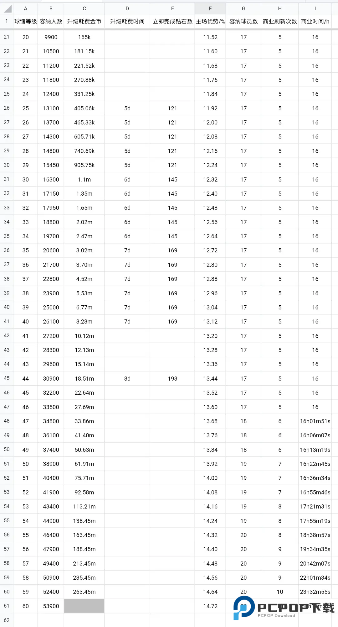 球馆别乱升级!核心是确保座位尽可能坐满人。如果坐不满,升球馆不仅不赚钱反而亏钱。开服前期(大概五联以下),35 级球场(20600 座位)足够用了,一场满座门票能有 200 万上下。