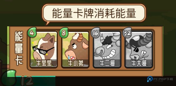 2、选择卡牌后,会自动扣除部分能量才能使用。