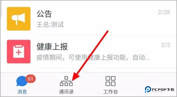 1、首先我们打开企业微信app,点击下面的通讯录。