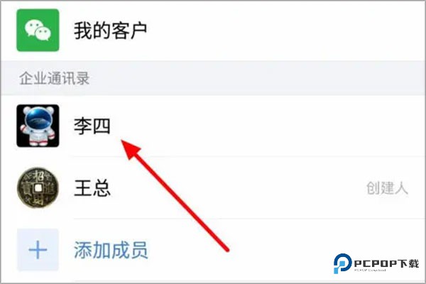 2、在通讯录中找到自己要删除的成员。