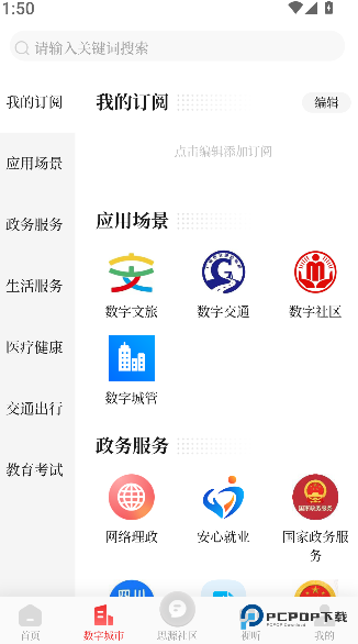 2、在首页底部功能导航栏找到 “数字城市” 板块,进入后点击 “我的订阅”,查看已关注的政务、服务等专属内容。