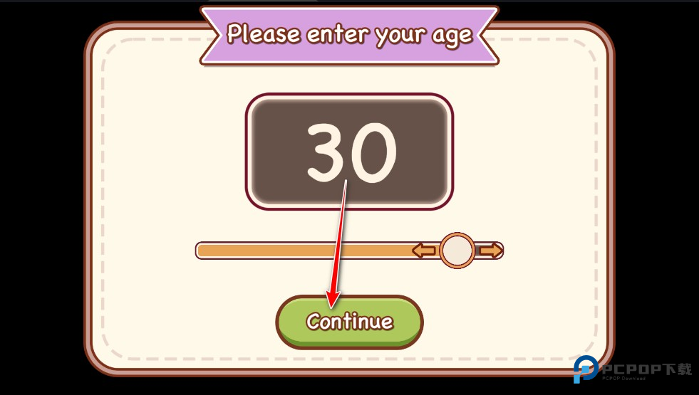 1.在本站下载安装并运行可口的咖啡美味的咖啡,拖动滑块选择自己的年龄,并点击Continue