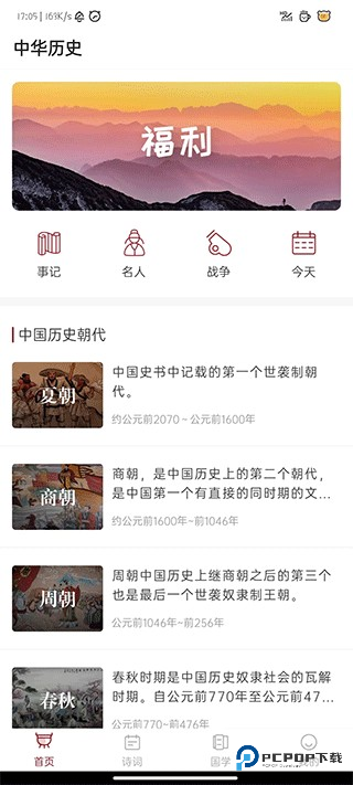 中华历史app是一款可中国历史在线学习软件,他界面简约有设计感,功能完善,内容分类明确,能够让用户快速地找到自己喜欢的内容学习。中华历史app汇集了从古至今所有的中国历史,包括中国的起源,从尧舜禹时期到现代发展。中华历史app他整理了一条完整的时间轴,让用户在学习历史的时候,能够更清晰的吧所有的事件串联起来,让历史变得更连贯。除此之外,他还收录了很多关于中华传统文化的知识,等待用户来阅读。